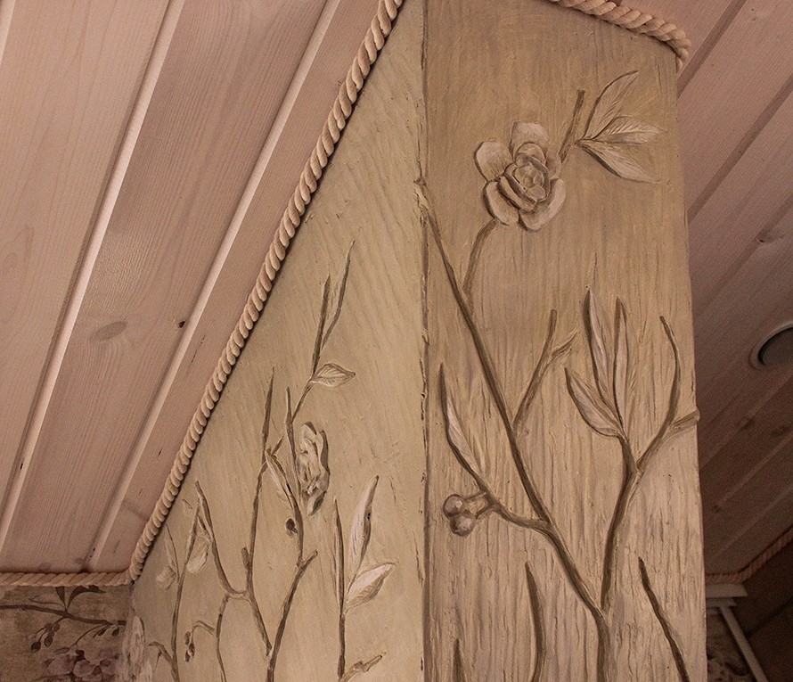 Валерий и Александра Киселёвы, рельеф из декоративной штукатурки